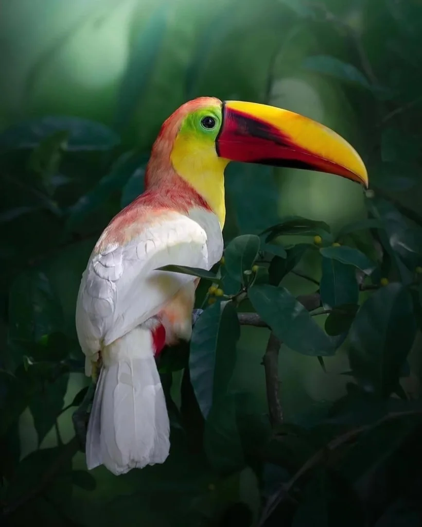 Costa Rica – Un tucán de pico castaño (Ramphastos ambiguus) con plumaje blanco fue avistado recientemente en un bosque costarricense,…