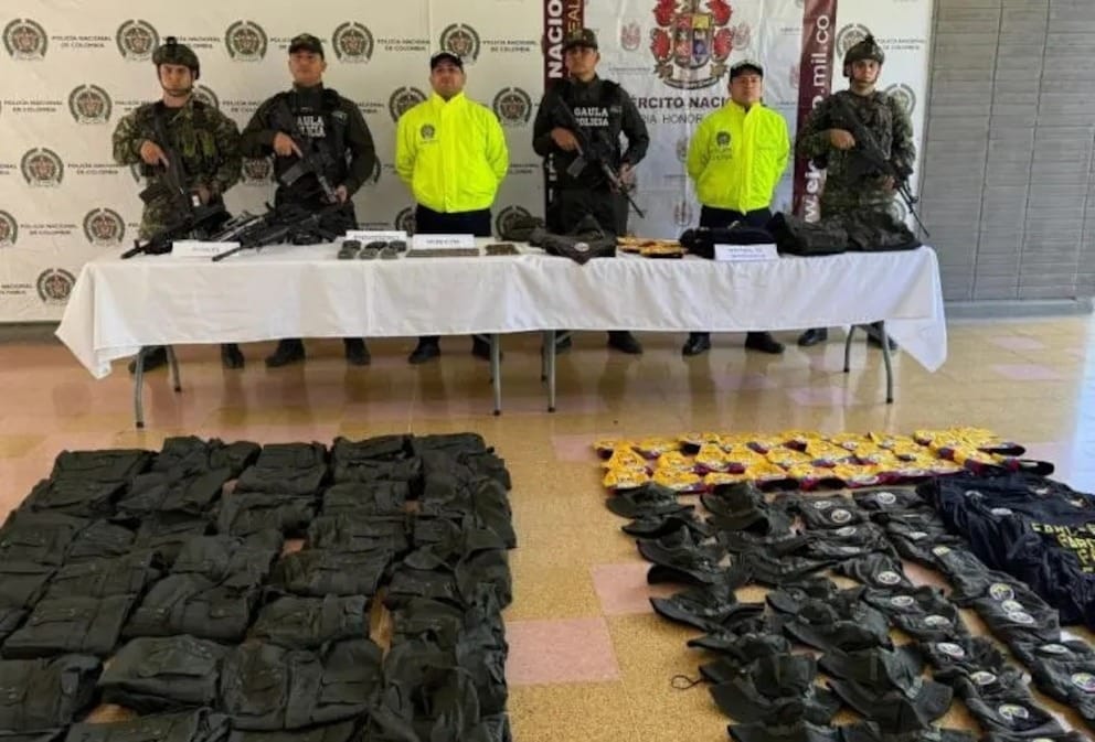 Según el reporte oficial, fueron encontrados tres fusiles —dos M4 y un AK-47 de fabricación venezolana— junto a proveedores de diferentes calibres, uniformes tácticos, prendas de uso militar y distintivos con emblemas de las Farc. Las autoridades señalaron que estos elementos estaban destinados a la conformación de una nueva célula armada en el centro del país.